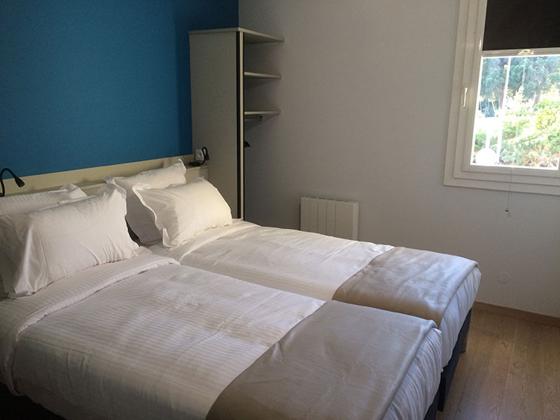 22 chambres, doubles ou twin adaptées pour deux personnes, 1 grand lit ou 2 lits de 90. Chambres récemment relookées et modernes. Toutes confortablement équipées, climatisées et insonorisées avec salle de bains privative, baignoire ou douche, WC, sèche-cheveux, téléphone, TV, bureau, WiFi gratuit dans tout l'établissement. Certaines ont vue terrasse ou piscine côté sud, d'autres avec vue sur le Mont Saint Clair et le Golf.